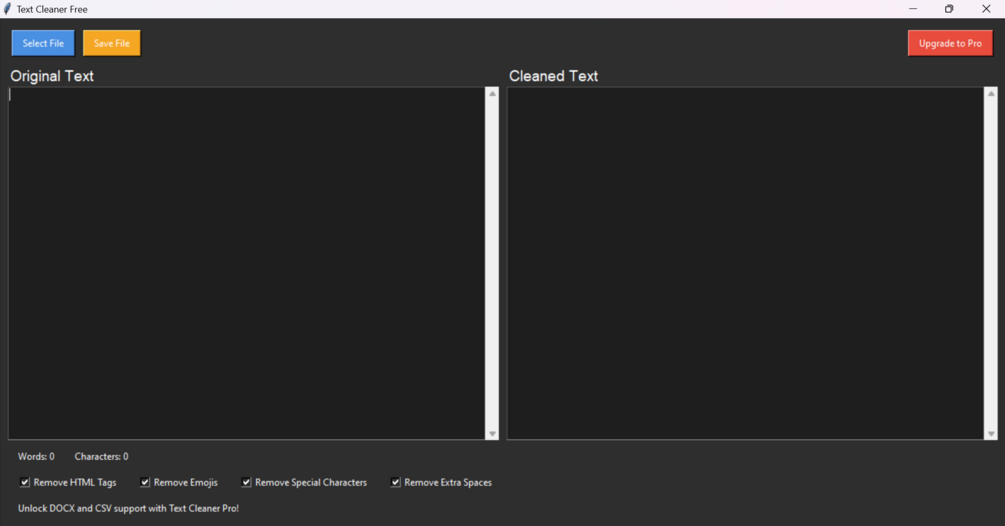 For additional features like PDF export, advanced cleaning tools, and batch file processing, check out the Pro version (coming soon).